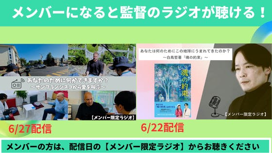 講演会や動画では話せないこと…を、【白鳥哲の<活動応援基金>】への参加者限定ラジオでお伝えしています!6/27に【限定ラジオ配信】されたのは、【あなたのために何ができますか?〜サンフランシスコから愛を叫ぶ〜】海外取材の時のお話が聴けます!メンバーになると過去の【限定ラジオ】配信もお聞きいただけ...