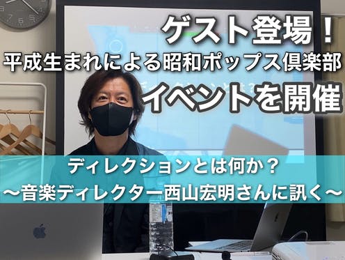 こんにちは、昭和ポップス倶楽部代表のかなえ氏です。2022年4月27日、「平成生まれによる昭和ポップス倶楽部」にて月に一度のイベントを開催しました。イベントのテーマは、「ディレクションとは何か?〜音楽ディレクター西山宏明さんに訊く〜」。ということで今回は、沢山の有名アーティストのディレクション...
