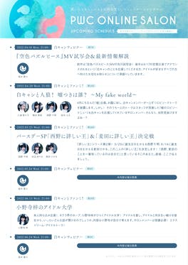2022年4月〜6月の配信スケジュールを公開!サロン限定のファンミやウェビナーをお楽しみください!※各配信日の約1〜2週間前より参加登録を開始します。なお、参加登録に関する情報は、アクティビティにてご案内いたします。