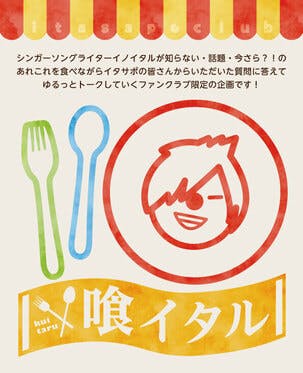シンガーソングライターイノイタルが知らない・話題・今さら?!のあれこれを食べながらゆるっとトークしていくファンクラブ限定企画「喰イタル」!(^^)/二食目に向けて、皆様からの質問を大募集します!皆様からの質問お待ちしています(^^)/質問内容は「なんでも」OKです!イノイタルが答えてくれるかは...
