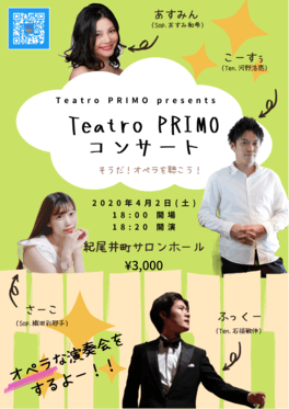 こんにちは!いつも応援ありがとうございます♡こちらでの報告が遅くなってしまい申し訳ありませんが、久しぶりのコンサート出演が決まりました!*********Teatro PRIMO presents『Teatro PRIMO コンサート』日時:2022年4月2日(土) 18:0...