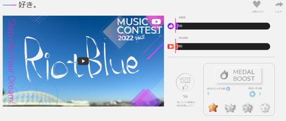 『夢カナYell Music Contest 2022』3日目!着々と反応いただけていて、うれしいです……!現在!視聴回数 90投票数 56となっております!もうすぐ視聴回数が100回になります!そしてMEDAL BOOSTもいただき、ありがとうございます……!こちらは投票には直接関係がない...