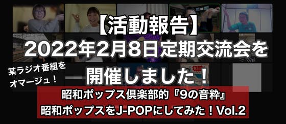 こんにちは、昭和ポップス倶楽部代表のかなえ氏です。2月8日、オンラインにて定期交流会を開催しました!交流会では、メンバーの誰かひとりがプレゼンターとなり、自分の得意な・好きな分野や歌手について自由に紹介してもらうという内容になっています。プレゼンターを務めたのは、これまで何度も発表している雨玉...