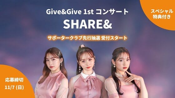 ハロー!Give&Giveスタッフです。1stコンサート「SHARE&」の詳細が発表され、のサポータークラブ先行販売がスタートしました!さらに、サポータークラブでコンサートを3倍楽しむ方法もご紹介させていただきました。本日は、佳奈の「SHARE&」への想いを伝えるメッセ...
