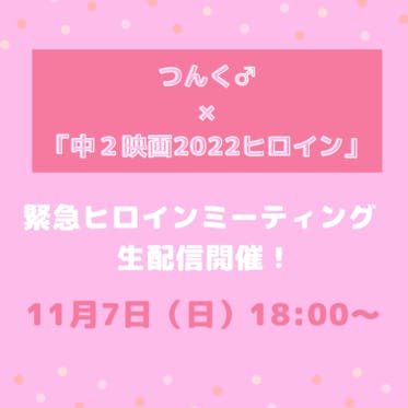つんく♂エンタメ王国メンバーの皆様こんにちは、そして新メンバーの方ようこそ!運営スタッフです。緊急生配信のご案内です!!つんく♂×中2映画ヒロイン!!!「中2映画プロジェクト2022」より緊急ヒロインミーティング 生配信開催!◆日時:11月7日(日)18:00~「HEROINES HOUSE」...
