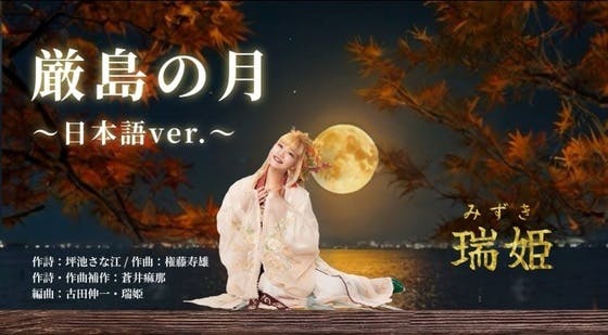 いつも瑞姫を応援いただきありがとうございます♪姫ノ宮スタッフです☆本日YouTubeチャンネル瑞姫-みずき-『姫チャンネル』にて『厳島の月 日本語Ver.』フルをアップいたしました♡⟡.*宮島を舞台にした楽曲...♪*゚厳島神社と月明かり︎︎☾*。ぜひ色々な風景を思い浮かべながら日本語Ver....