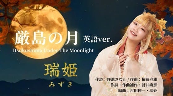 いつも瑞姫を応援いただきありがとうございます♪姫ノ宮スタッフです☆YouTubeチャンネル瑞姫-みずき-『姫チャンネル』にて『厳島の月 英語Ver.』フルをアップいたしました♡⟡.*英語Ver.はまだライブでも歌われていないので、ぜひお楽しみください( *´꒳`* )シェアも大歓迎です⸜(*ˊ...