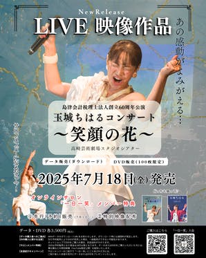 【LIVE映像作品リリース】『島津会計税理士法人創立60周年公演 玉城ちはるコンサート~笑顔の花~』高崎芸術劇場スタジオシアター2024年10月17日(木)収録2025年7月18日(金)発売!データ・DVD(100枚限定) 各3,500円ですが…サロンメンバーの皆さんは、2025年7月1日(火...
