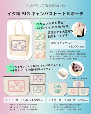 いつもイノイタルを応援いただきありがとうございます。「INOITARU OFFICIAL WEBSHOP」にて、グッズが販売開始になりました。【イタ助BIGキャンバストート&デイリーポーチ】大変お待たせ致しました!ライブ会場にて先行しておりました、BIGキャンバストート&ポーチがWebShop...