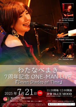 わたなべまき活動7周年を記念して開催されるワンマンライブ、詳細決定がいたしました! サポートメンバーには、セカンドアルバム「体温」のレコーディングメンバーより、進藤洋樹氏(Gt)、梅沢茂樹氏(Ba)そして佐藤大輔氏(Dr)を迎え、豪華なバンドサウンドでお届けいたします。 公務員からアーティス...