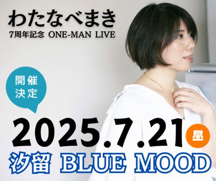 7周年記念ワンマンライブの開催が決定しました️!!!!・わたなべまき7周年記念ワンマンライブ2025年7月21日(月祝) 昼会場:BLUE MOOD(築地・汐留)・夏の3連休、最後の日のお昼帯です。場所は築地・汐留エリアにあるブルームード。また、久々のバンド編成でのとなります!よりダイナミック...