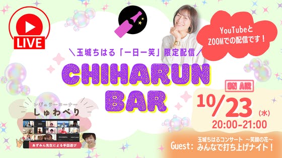 【10月『ちはるんばー』日時決定】10/23(水)20:00~リアルタイムを楽しめる方はリアルタイムで、お仕事などで難しい方はアーカイブをお楽しみください。10/23ちはるんばーの内容はこちら・コンサート打ち上げナイト!来られた方も来られなかった方もオンラインオフ会で打ちあがりましょう。・しゅ...