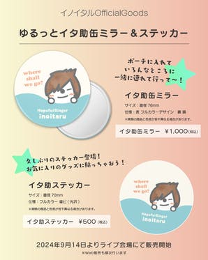 いつもイノイタルを応援いただきありがとうございます。「INOITARU OFFICIAL WEBSHOP」にて、グッズが販売開始になりました。【ゆるっとイタ助缶ミラー&ステッカー】昨年発売したパスケースと同じ、ゆるゆわなイタ助デザインで缶ミラーとステッカーが出来ました(*´ω`*)期間限定で送...