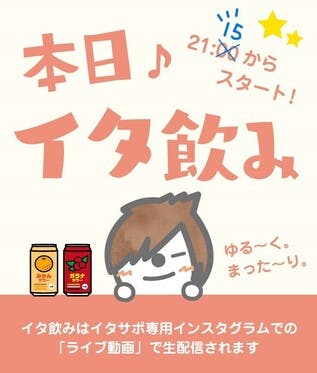 ★イタサポ特典の「イタ飲み」★非公開のインスタグラムアカウントにて、イタルがお酒を呑みながら様々な話題を楽しく!時々おちゃめな発言ありな「イタ飲み」本日21時15分 からです!いつもより15分だけ遅くスタートですから、インスタをじっと見つめながら、更新しながら、なぜだろ~?と思わないようにご注...
