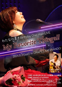2024.8.31開催 わたなべまきBirthday One-man LIVE FC会員様ご予約START今年も開催いたします。わたなべまきバースデー月に合わせたワンマンイベントです!タイトルは『My Favorite Things!!』わたしのお気に入りを詰め込んだライブにしようと思います。...