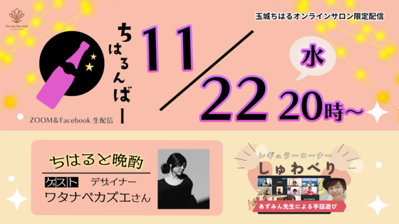 【11月『ちはるんばー』日時決定!】下記の日程で決定いたしましたのでご報告いたします!11月22日(水)20:00~リアルタイムを楽しめる方はリアルタイムでお仕事などで難しい方はアーカイブをお楽しみください!11/22ちはるんばーzoom会議の内容はこちら!・ゲスト ワタナベカズエさんhttp...