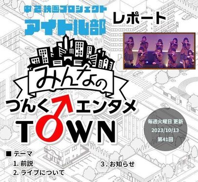 こんにちは!エンタメTOWN・PR担当の津山です。今週の中2映画プロジェクト・アイドル部&ヒロイン選抜などなどのレポートが投稿されました!*続きは「みんなのつんく♂エンタメTOWN」内にて公開中です!【アイドル部LIVE出演情報】10/14(土)【Multi Planet Stage】・新宿ヘ...
