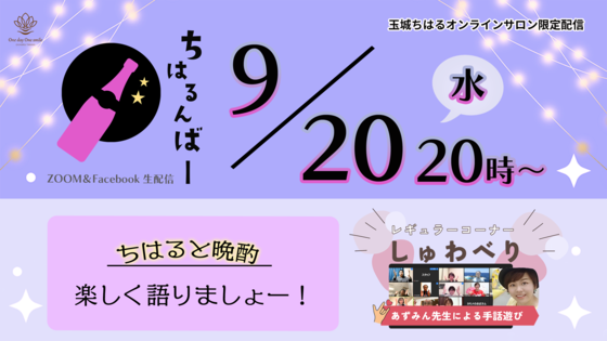 9月『ちはるんばー』下記の日程で決定いたしましたのでご報告いたします9月20日(水)20:00~リアルタイムを楽しめる方はリアルタイムで!お仕事などで難しい方はアーカイブをお楽しみください!9/20ちはるんばーzoom会議の内容はこちら・ゲスト:akane彩さん・プレゼント企画8月当選者くじ・...