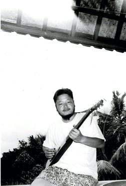 ウブドのセラワンゲストハウスのテラスにて1996年、バリ島・ウブド。セラワンゲストハウスのテラスで、マーチン・バックパッカーを抱えて過ごしたひととき。南国の空と椰子の木に囲まれながら、旅の記憶を音に変える時間は、何ものにも代えがたいものだった。このギターから生まれたメロディは、その後の「熱帯舞...