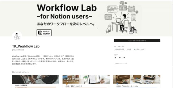 https://www.notion.com/ja/@tk_workflowlabこちらのページではテンプレートの販売も実施しています!Discord有料プランの方には毎月1つ以上有料テンプレートのプレゼントなども行っています!