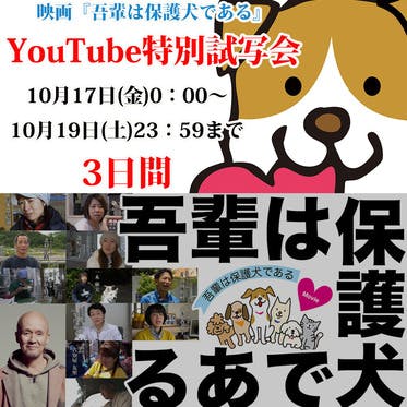 こんにちは、保護わんの巽です。ご案内しておりました映画『吾輩は保護犬である』YouTube特別試写会のリンク等詳細をお伝えいたします。────────────────────【開催期間】10月17日(金)0:00〜10月19日(土)23:59【視聴方法】YouTube特別試写会リンク↓(視聴で...