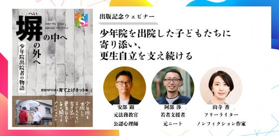 少年院を出院した子どもたちに寄り添い、更生自立を支え続けるプロジェクト パトロンのみなさま 育て上げネットの髙崎です。 いつも私たちの活動を応援していただきありがとうございます。 今月7/31、書籍の出版を記念してウェビナーを開催いたします。 講師は、本書にも登場する支援者のお二人で、安部...