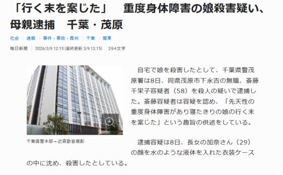 令和8年3月8日に、重い障がいを持つ我が子を母親が手に掛けたというニュースが報道されました。「次は私かもしれない」ほとんどの重度障がい児者の親は、こんなニュースを見るとそう思うそうです。私たち障がい福祉の従事者は、こんな悲しいニュースが人々の心を痛めないよう、想いを託されて仕事をしています。重...