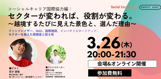 こんにちは!ソーシャルキャリアラボ運営チームです。今回は、コミュニティの新しい取り組みと、次回イベントのお知らせです!【1. 学生向け奨学生プログラムをスタート】ソーシャルキャリアラボではこのたび、25歳以下の学生を対象とした奨学生プログラムをスタートすることになりました。社会課題に関心があっ...
