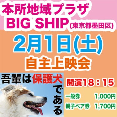 保護わんファンクラブの皆さんへ2月1日(土)に保護わんのメンバーによる映画『吾輩は保護犬である』の自主上映会を行います!!会場:本所地域プラザ BIG SHIP(東京都墨田区) 多目的ホール詳細とチケットのご購入はこちらからお願いします↓https://t.livepocket.jp/...