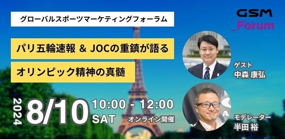 GSMフォーラムの開催案内です。8月10日(土)10:00-12:00皆さん。真夏のスポーツの祭典の真っ最中ですね。眠れぬ夜が続いています。3年前のもやもや感を吹き飛ばしてくれる【パリ五輪】です。という事で、 今回のGSM_FORUMはテーマを【オリンピック】に致します。今回はゲストとして日本...