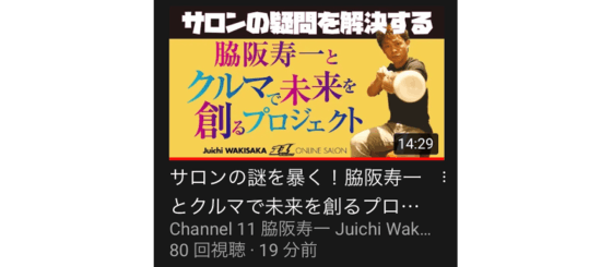「脇阪寿一とクルマで未来を創るプロジェクト」をご紹介する動画をSHINJI が作成してくださり「channel11」で取り上げていただきました!→サロンの謎を暴く!脇阪寿一とクルマで未来を創るプロジェクトとはなんぞや?!-Channel 11(Youtube)脇阪寿一ファンの一人としても大変光...