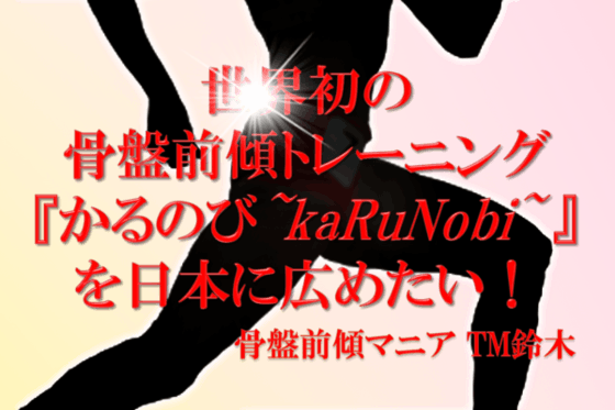 【追記】私・TM鈴木のファンページをご覧いただきありがとうございます。骨盤が過度に前傾していることで骨盤や背骨といった体の中心から動き始める黒人アスリートと、骨盤がそれ程前傾しないため手足から動かす癖がでてしまう日本人を比べ、走りや動きにそのまま反映されるという現実を垣間見たことが、『かるのび...