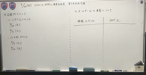3月10日(日)にレイジェンド滋賀FC経営企画室として、第5回目の企画会議を実施しました。今回はその内容を一部ご紹介いたします。※レイジェンド滋賀FC経営企画室レイジェンド滋賀FCのスタッフとともに試合会場でのイベントを検討したり、クラブを盛り上げていくための活動を行ったりするグループです。【...