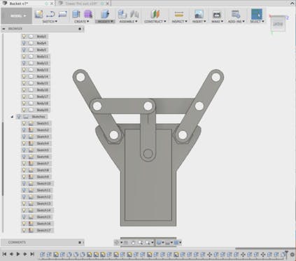 真ん中手前のパーツは、円状のサーボモータジョイントにアタッチする 円盤が回転する動きを前後運動に変換しものを掴む。 仕組みは簡単だが動きそう プリントアウトして試してみる