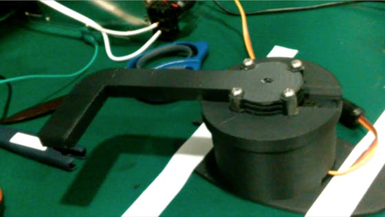 お水のボトルを検知すると叩き落としにかかるロボットを製作しました。(高トルクなのでこれで開けっ放しのドアも閉めれます。