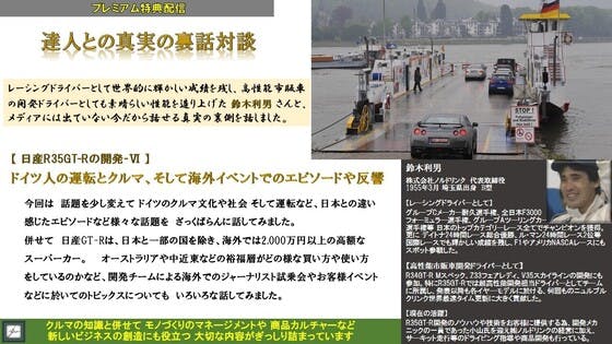 <コミュニティ特典映像>【達人との裏話対談】鈴木利男さんとの裏話対談…「日産R35GT-Rの開発-Ⅵ」ドイツ人の運転とクルマ、そして海外イベントでのエピソードや反響