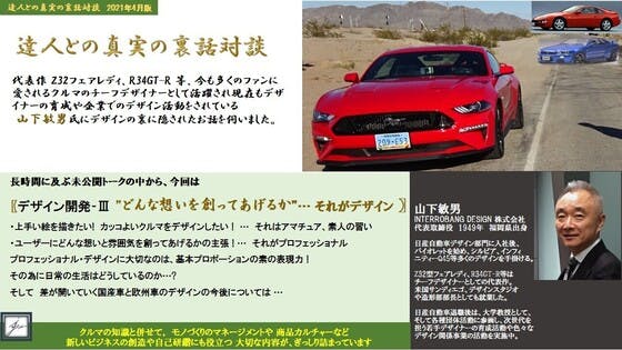達人との真実の裏話対談、今回は〖デザイン開発-Ⅲ”どんな想いを創ってあげるか…それがデザイン”〗です。“最後のスカイラインGT-R”として、新車時の販価を上回る2000万円以上の価格で中古車が取引されるR34GT-R。そしてその美しいプロポーションで今なお多くのファンに熱愛されるZ32型フェア...