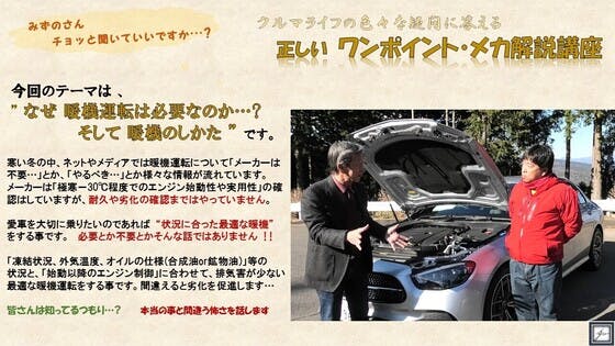 正しい ワンポイント・メカ解説講座。今回は” なぜ暖機運転は必要か…?そして暖機のしかた”です。暖機運転は「必要か、不要か」等のいい加減な話では無く、”状況に合わせた最適な暖機”をする事が必要で大事な事です。間違えるとクルマの性能低下や寿命を縮めます。寒さが続くこの頃、ネットやメディアでは「加...