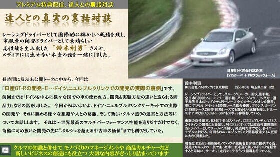 日産R35GT-Rの過酷で苛め抜いた開発は、世界最高のマルチパフォーマンス性能を造るだけでなく、ポルシェを遥かに凌ぐ中古車価値(劣化の防止)まで視野に入れていた。レーシングドライバーとして日本もさることながら世界に結果を残し、世界に誇れる開発ドライバーとしてR35GT-Rの超高性能を育て、現在...