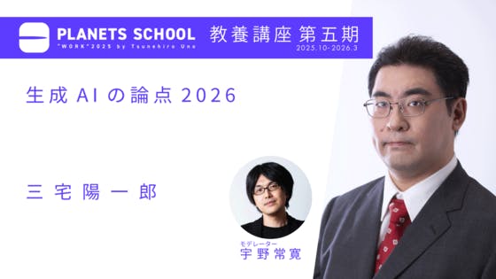 ▼講義概要生成AIの発展は日進月歩で、状況を追いかけるだけで、手がいっぱいと言う人も多いでしょう。ポイントは、おそらくこの先AIと人間の関係に発生する論点を抑えておくことです。今回はエージェント的なAIの開発者でもあり、AIと接続の関係を研究してきた三宅陽一郎さんに、この「論点」を改めて整理し...