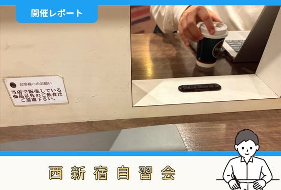 こんにちは!ファシリテーターの小西です(^▽^)/2月23日(月)に開催した西新宿自習会の報告をします。目次1.タイムスケジュール2.勉強・作業内容3.感想参加申込みはこちら!1.タイムスケジュール今回は下記のタイムスケジュールで開催しました。08:30 開催場所に集合08:40 簡単に自己紹...