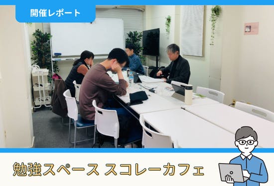 こんにちは!古岩井です(^^)今回は2月22日(日)に開催した勉強スペース「スコレーカフェ」の開催報告になります。最後までお付き合い頂ければ嬉しいです!目次1.スコレーカフェって何?2.当日の様子3.次回の開催予定参加申込みはこちら!1.スコレーカフェって何?スコレーカフェとはレンタルスペース...