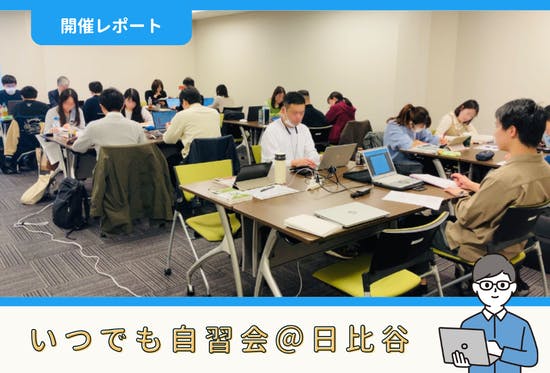 こんにちは!コミュニティマネージャーの古岩井です(^▽^)/2/23(月)に開催したいつでも自習会@日比谷の開催報告を致します。目次1.いつでも自習会って何?2.タイムスケジュール3.勉強・作業内容4.感想参加申込みはこちら!1.いつでも自習会って何?いつでも自習会とはレンタルスペース等を貸し...