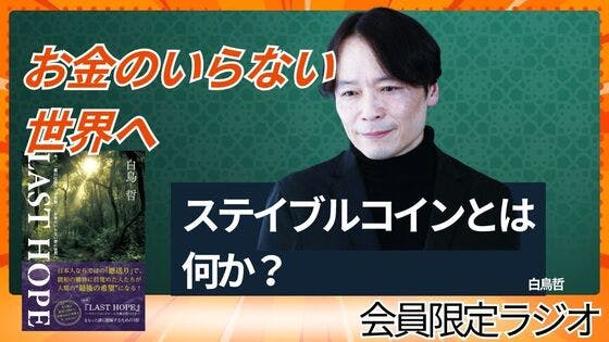 講演会や動画では話せないこと…を、【白鳥哲の<活動応援基金>】への参加者限定ラジオでお伝えしています!12/19に【メンバーの方に配信されたラジオ】は、【お金の要らない世界へ〜ステイブルコインとは何か?〜】メンバーになると過去の【限定ラジオ】配信もお聞きいただけますので是非ご参加ください(メン...