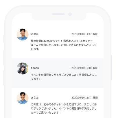 活動報告やメッセージの機能を活用して公開中〜公開後まで継続的に支援者とコミュニケーションをとることができます。