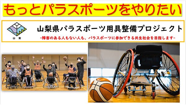 「パラスポーツをやりたいけど、用具がない。」そんな問題を解決するために、山梨県障害者スポーツ協会ではパラスポーツの用具の貸し出しを行っています。しかし、多くの要望に応えるためには、スポーツ用具が不足しています。そして、競技用の車いすは、どの種目のものも高額で個人で用意することが難しいのが現状です。山梨県は障害の有無にかかわらず、すべての人がパラスポーツに参加できる共生社会の実現を目指しています。