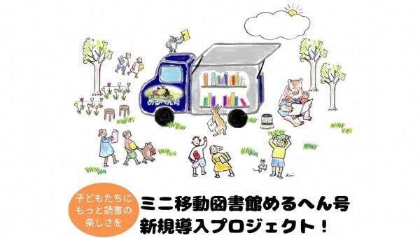 ミニ移動図書館めるへん号!現在ある3,000冊積載のそよかぜ号とは別に、機動力重視の小型車を導入します!学校巡回で1校だけ道が狭く入れなかった学校、保育園や幼稚園、子ども向けのイベント等にも出向きます。移動図書館に来て欲しいと心待ちにしている子どもたちのために、皆さまのご支援をお願いいたします。