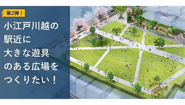 埼玉県の南西部に位置し、「小江戸」と呼ばれる川越市。蔵造りの町並みや川越まつりは毎年多くの方々が観光で訪れ賑わいますが、駅周辺には緑や公園が少なく、こどもたちの遊び場の不足やまちなかの暑さ対策が問題となっています。
