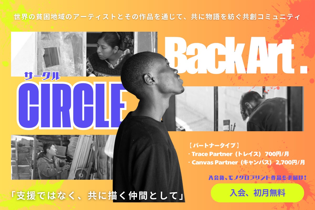 BackArt. Circle は、世界の貧困地域で生きるアーティストと、その作品を通じて共に物語を紡ぐ共創コミュニティです。あなたの参加が、遠い国のアトリエを...