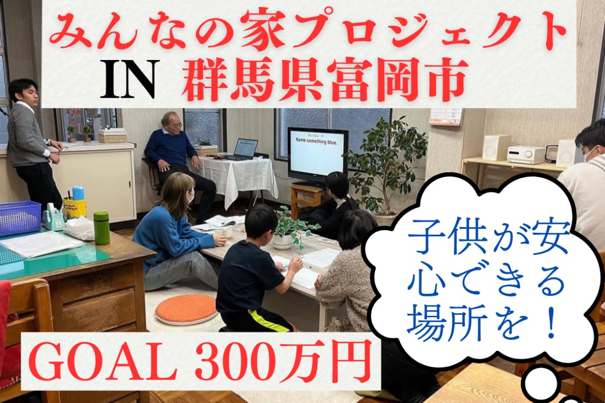 今現在群馬県富岡市では子供の居場所が少ない。そこで私たちみんなのおうえん団が設置しているみんなの家を子供達にたくさん使ってもらい、教育格差を是正し、子どもたちの...